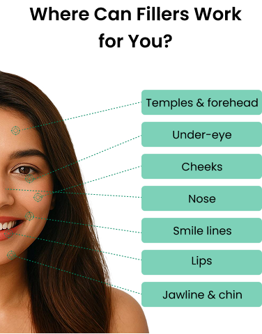 Fillers are suitable for adults 21+ depending on concern — from enhancement to anti-aging.