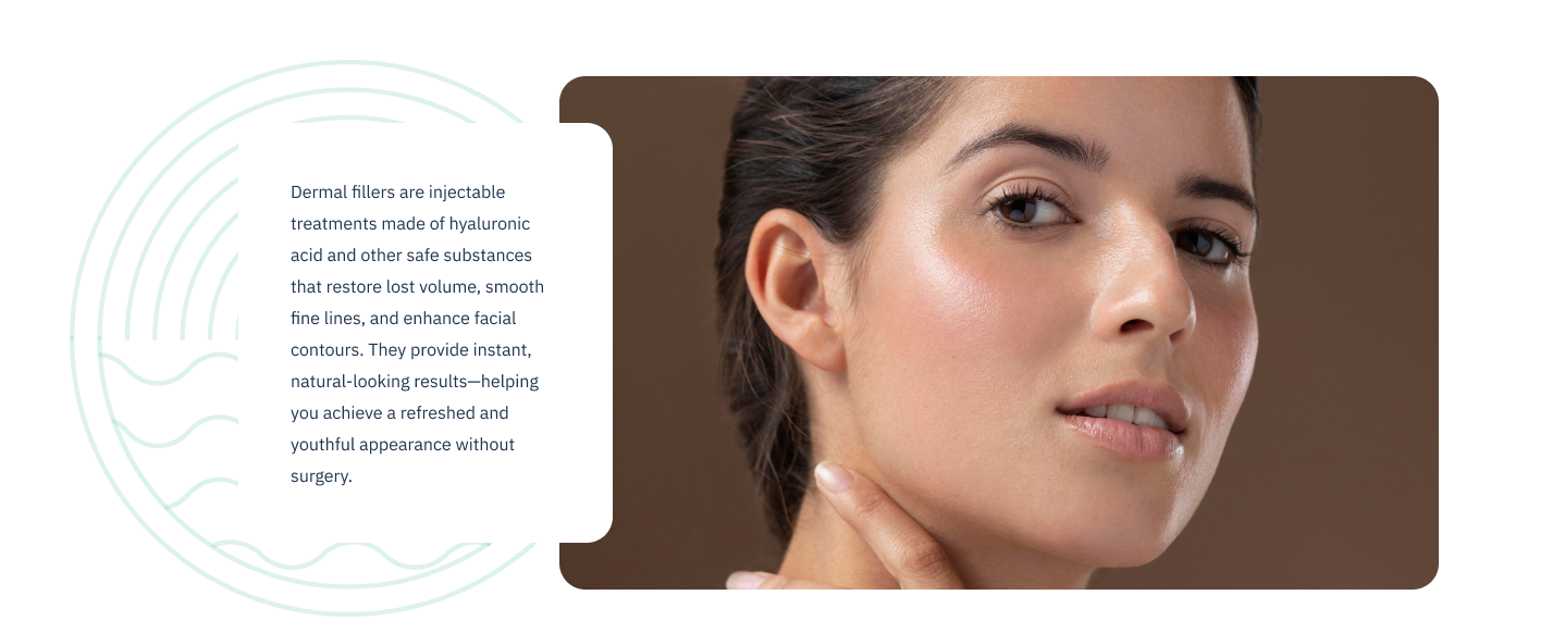 Dermal fillers are injectable treatments made of hyaluronic acid and other biocompatible substances that restore lost volume, smooth out fine lines, and enhance facial contours. They deliver instant, natural-looking rejuvenation—helping you achieve a refreshed and youthful appearance without the need for surgery.
